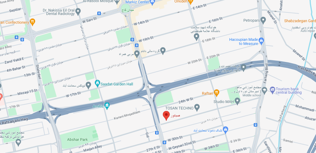 آدرس: تهران_بلوار اصلی سعادت آباد - نرسیده به خروجی نیایش شرق - خیابان حق طلب - پلاک ۴۹- طبقه اول تلفن: 92009192-021